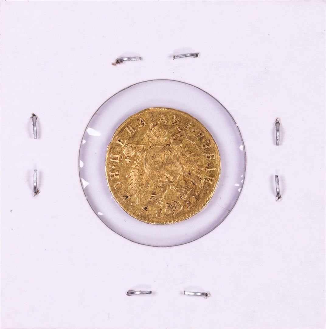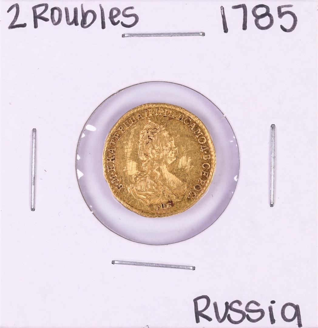 One 1785 Russia 2 Roubles Gold Coin.