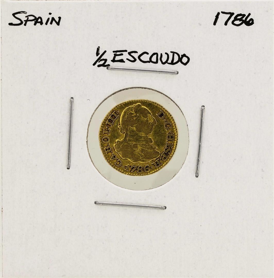 One 1786 Charles III Spanish 1/2 Escudos Gold Coin.