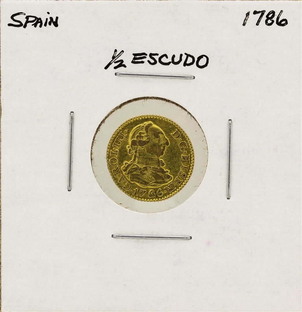 One 1786 Charles III Spanish 1/2 Escudos Gold Coin.