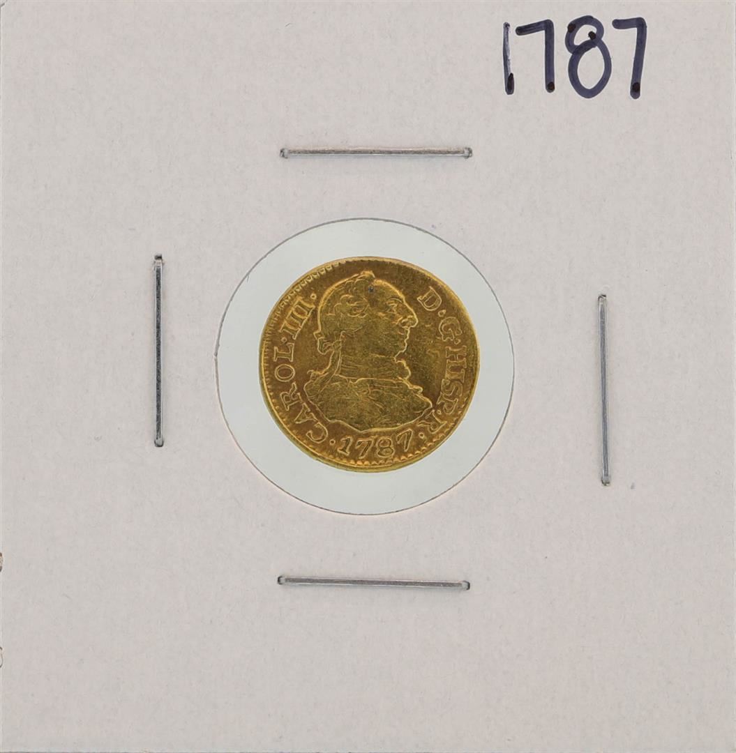 One 1787 Spanish 1/2 Escudos Carol III Gold Coin.