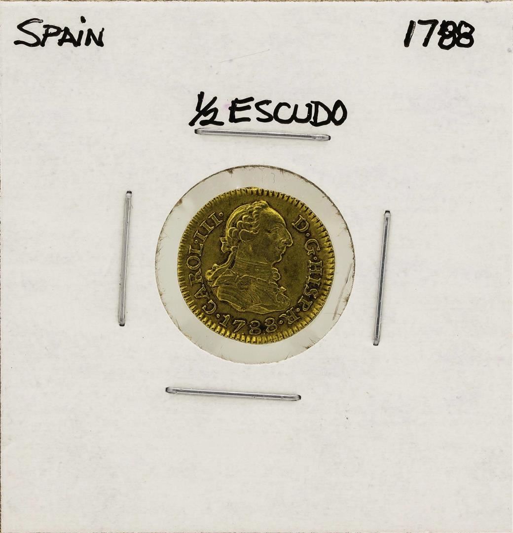 One 1788 Charles III Spanish 1/2 Escudos Gold Coin.