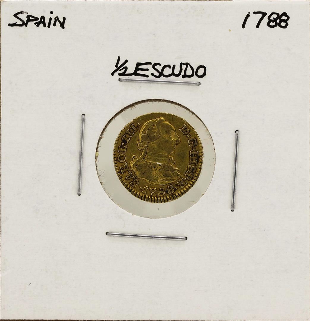 One 1788 Charles III Spanish 1/2 Escudos Gold Coin.