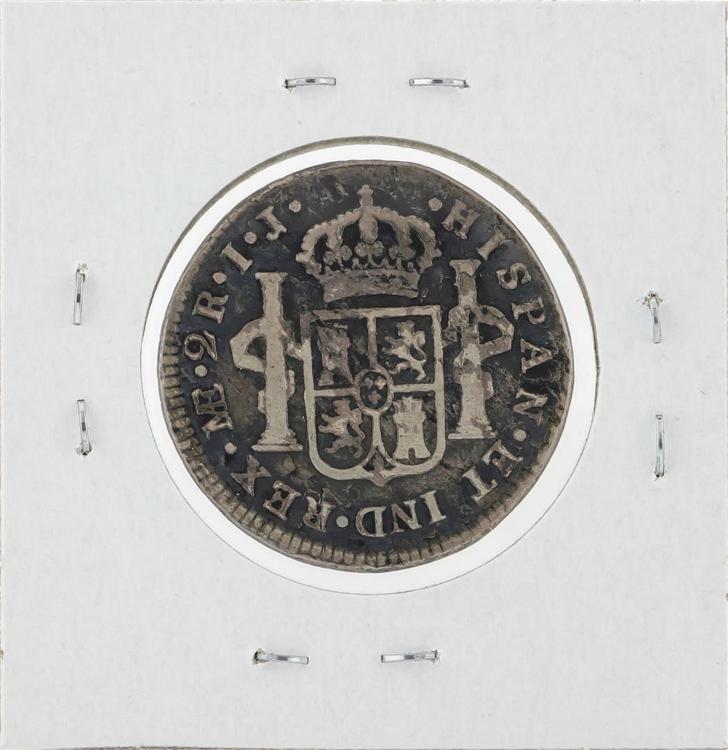 One 1788 IJ Peru 2 Reales Silver Coin.