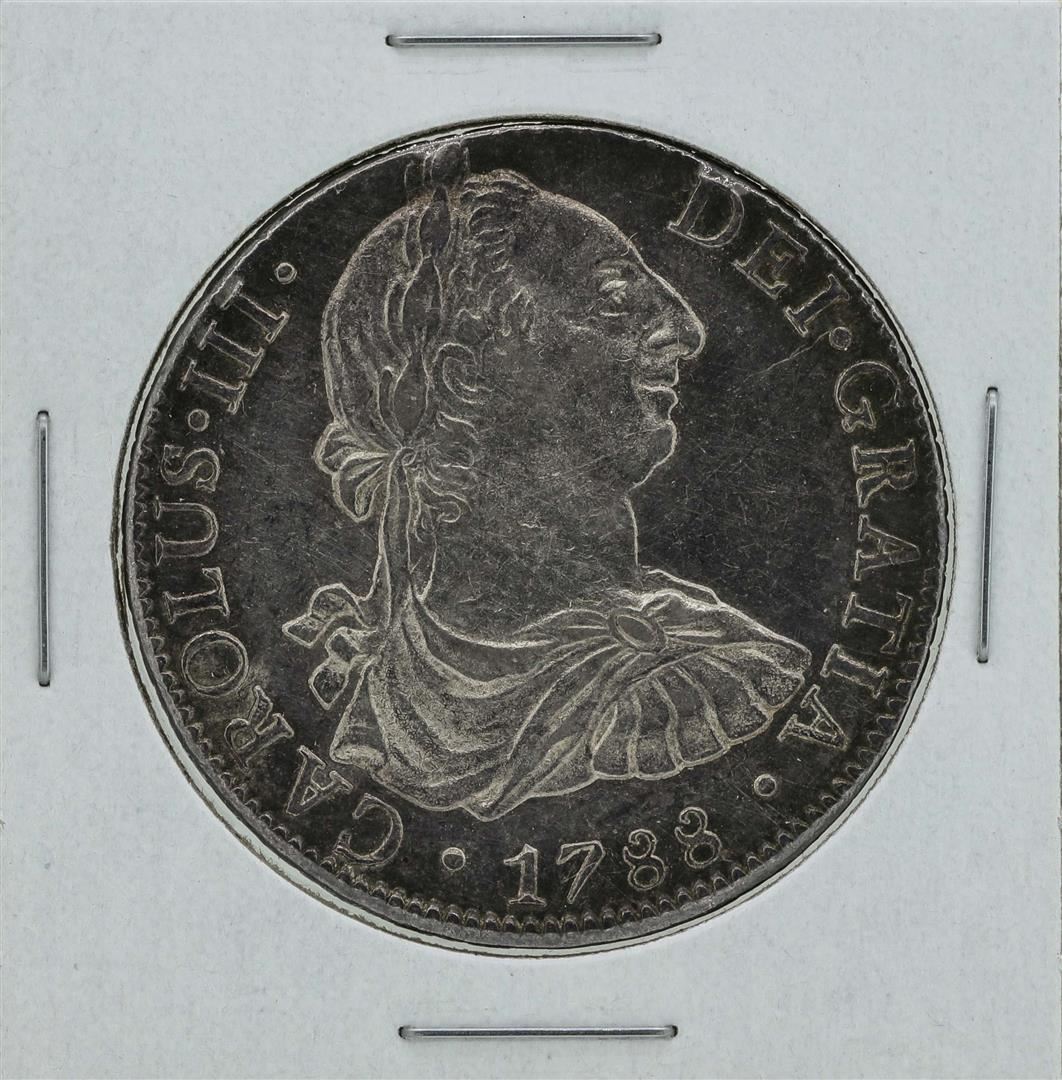 One 1788 Mexico 8 Reales Carlos III Silver Coin.