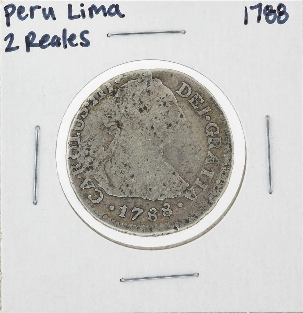 One 1788 Peru Lima 2 Reales Silver Coin.
