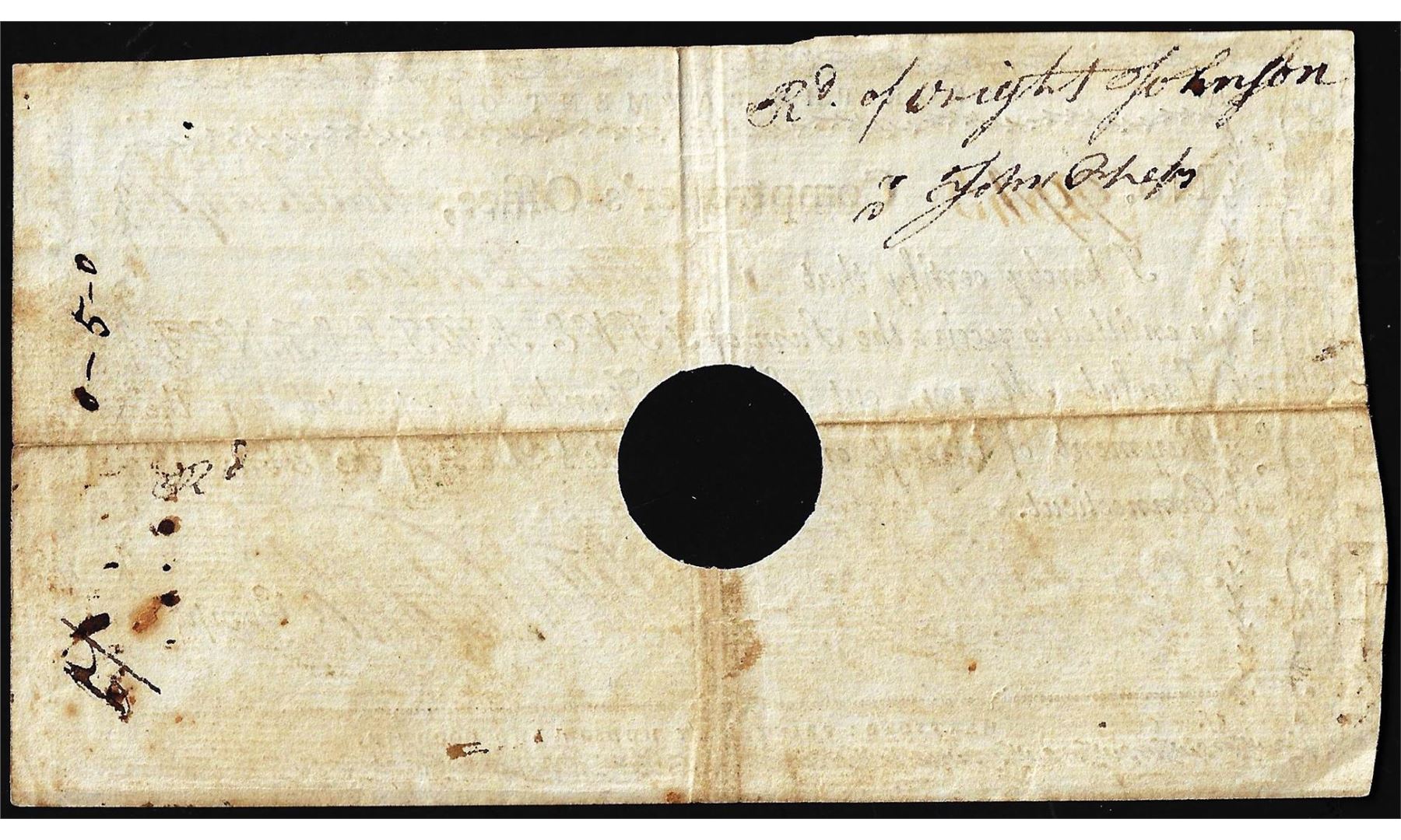 One 1789 Connecticut 5 Shillings Comptrollers Office Colonial Currency Note Cut Canceled.
