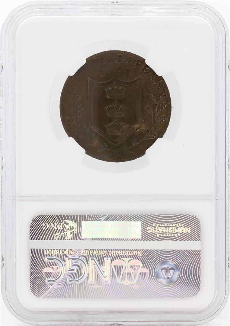 1791 Great Britain 1/2 Penny Yorkshire Hull Coin NGC MS64BN