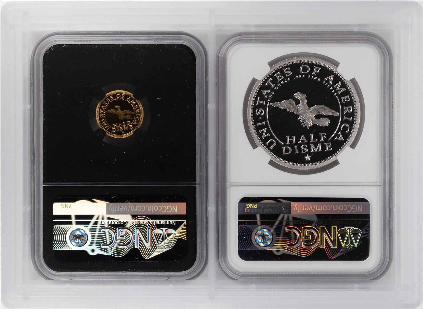 One 1792-2017 Half Disme 1/10 oz. Gold & 1oz. Silver Medals NGC PF70 W/ Moy Signature Set. NGC Certified.