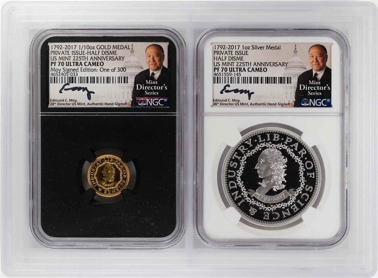 One 1792-2017 Half Disme 1/10 oz. Gold & 1oz. Silver Medals NGC PF70 W/ Moy Signature Set. NGC Certified.