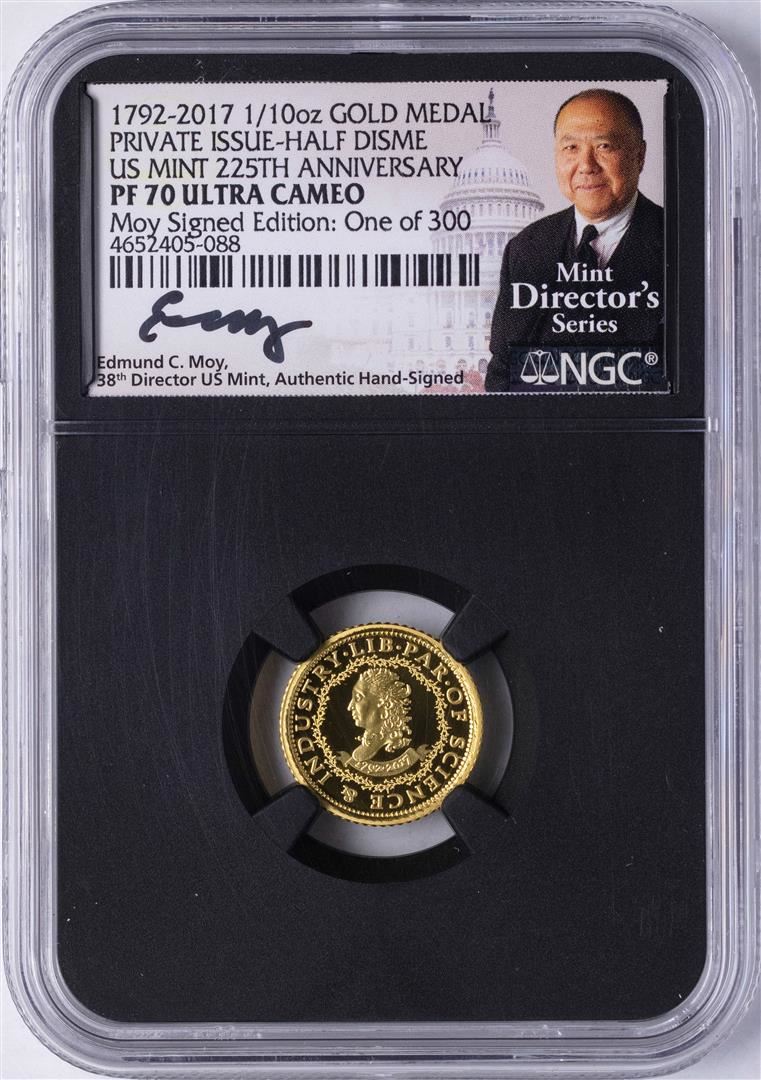 1792-2017 Half Disme 1/10 oz. Gold Medal NGC PF70 W/Edmund C. Moy Signature