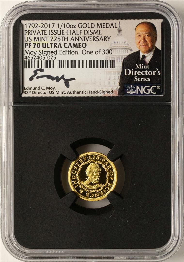1792-2017 Half Disme 1/10 oz. Gold Medal NGC PF70 W/Edmund C. Moy Signature