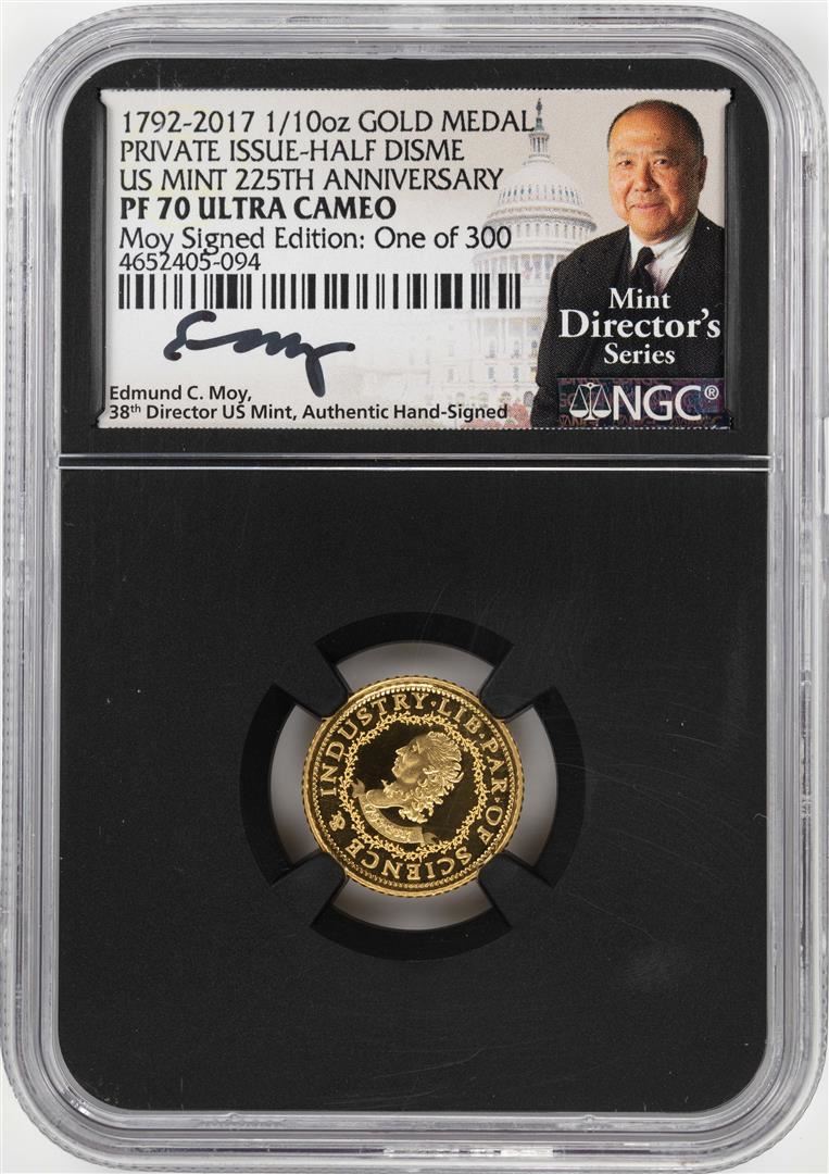 1792-2017 Half Disme 1/10 oz. Gold Medal NGC PF70 W/Edmund C. Moy Signature