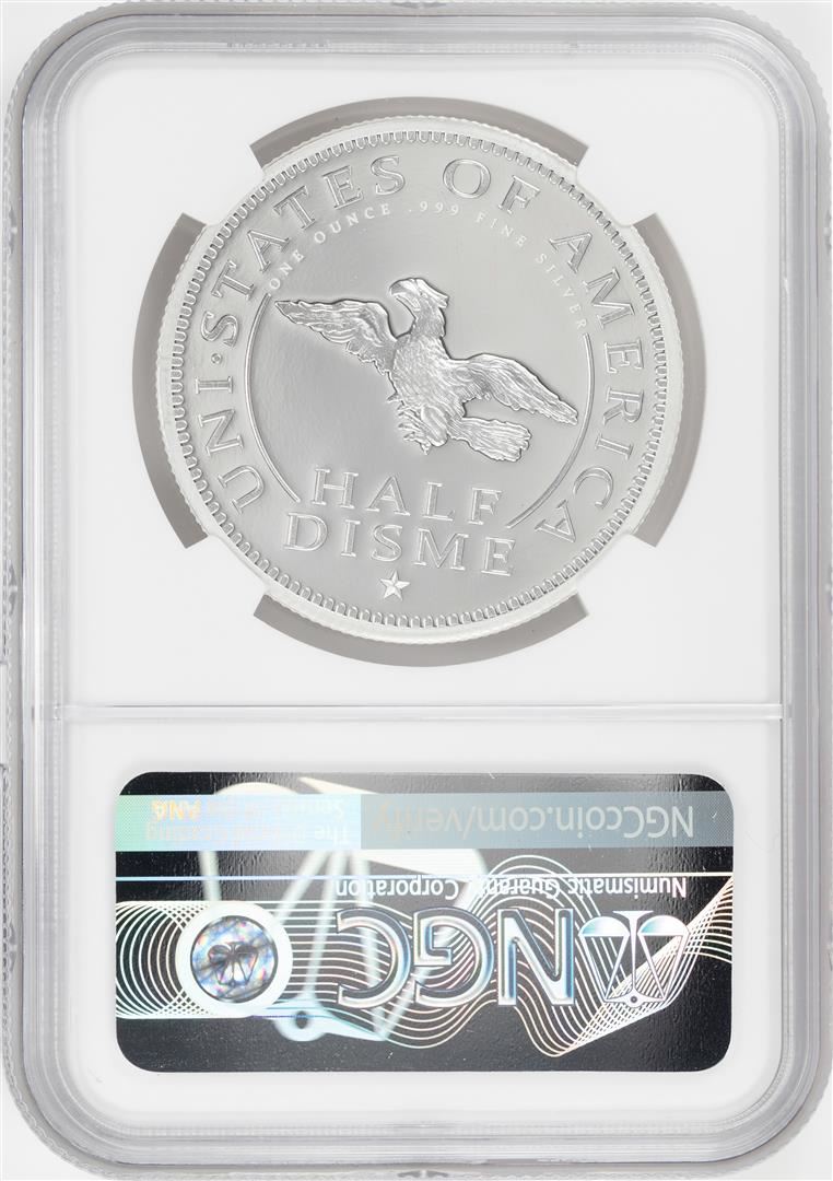One 1792-2017 Half Disme 1 oz. Silver Medal NGC PF70 W/Edmund C. Moy Signature. NGC Certified.