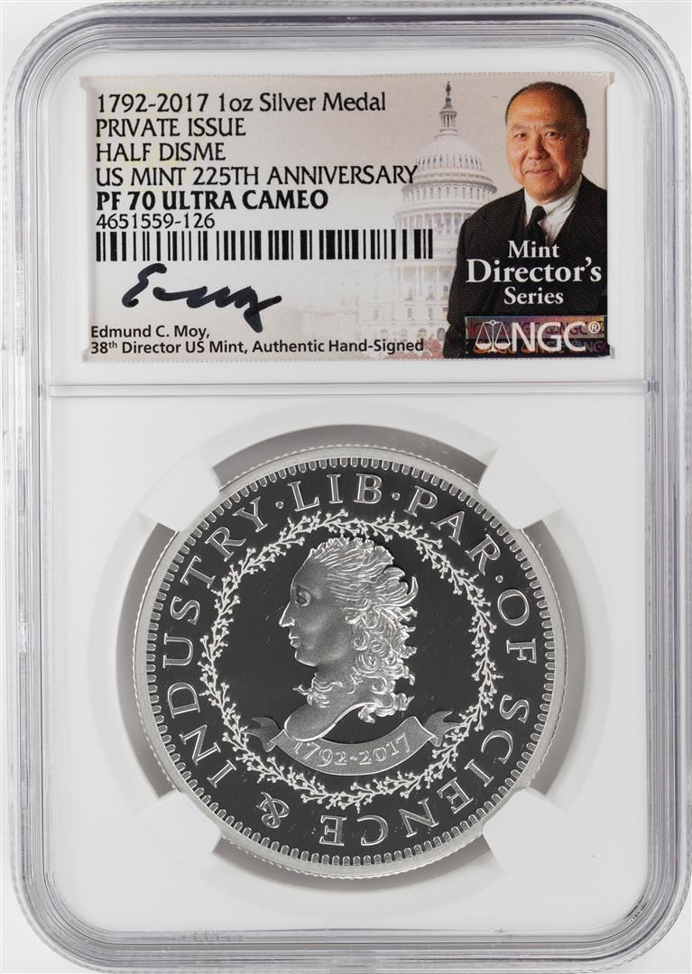 1792-2017 Half Disme 1 oz. Silver Medal NGC PF70 W/Edmund C. Moy Signature