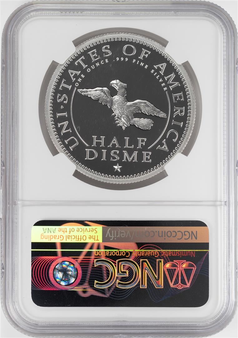 One 1792-2017 Half Disme 1 oz. Silver Medal NGC PF70 W/Edmund C. Moy Signature. NGC Certified.