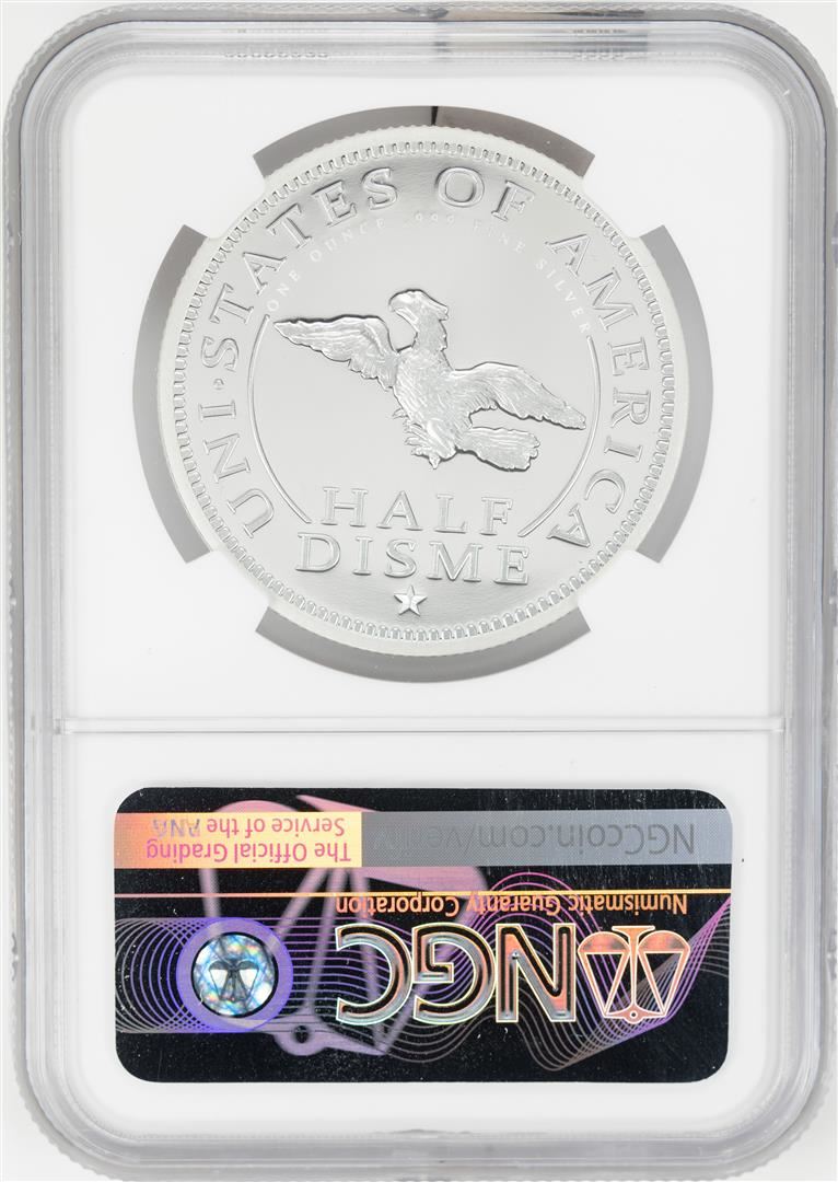 One 1792-2017 Half Disme 1 oz. Silver Medal NGC PF70 W/Edmund C. Moy Signature. NGC Certified.