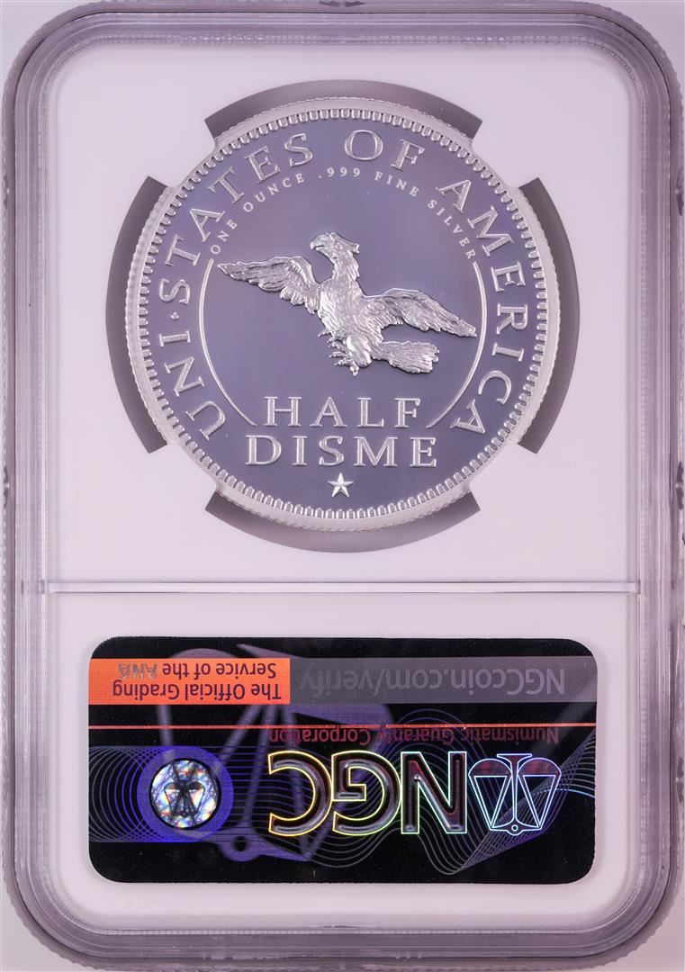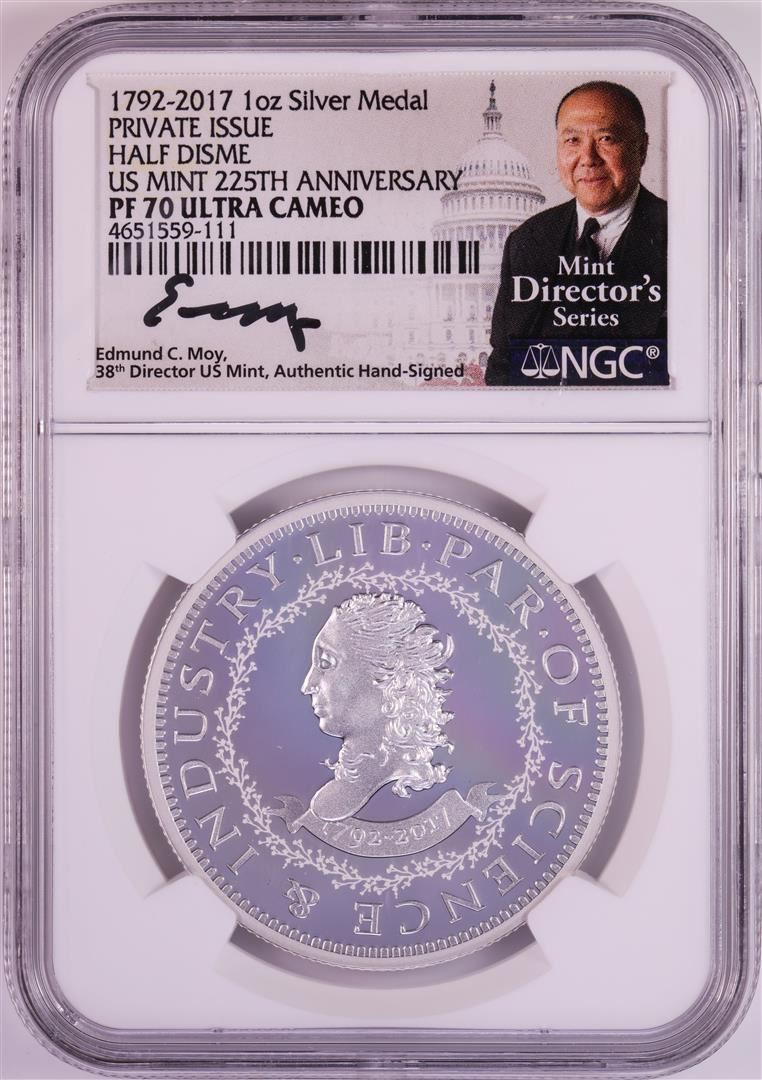 One 1792-2017 Half Disme 1 oz. Silver Medal NGC PF70 W/Edmund C. Moy Signature. NGC Certified.
