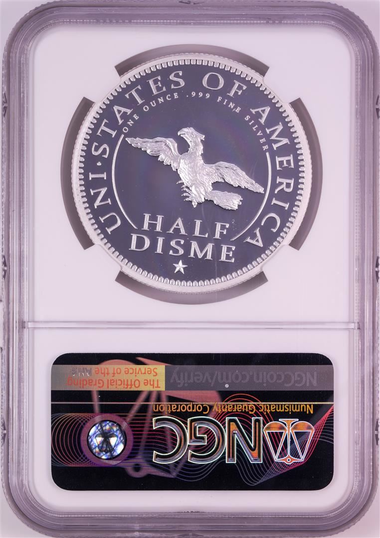 One 1792-2017 Half Disme 1 oz. Silver Medal NGC PF70 W/Edmund C. Moy Signature. NGC Certified.