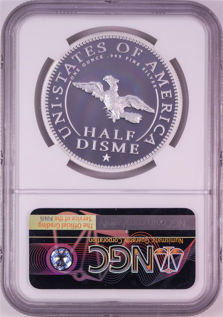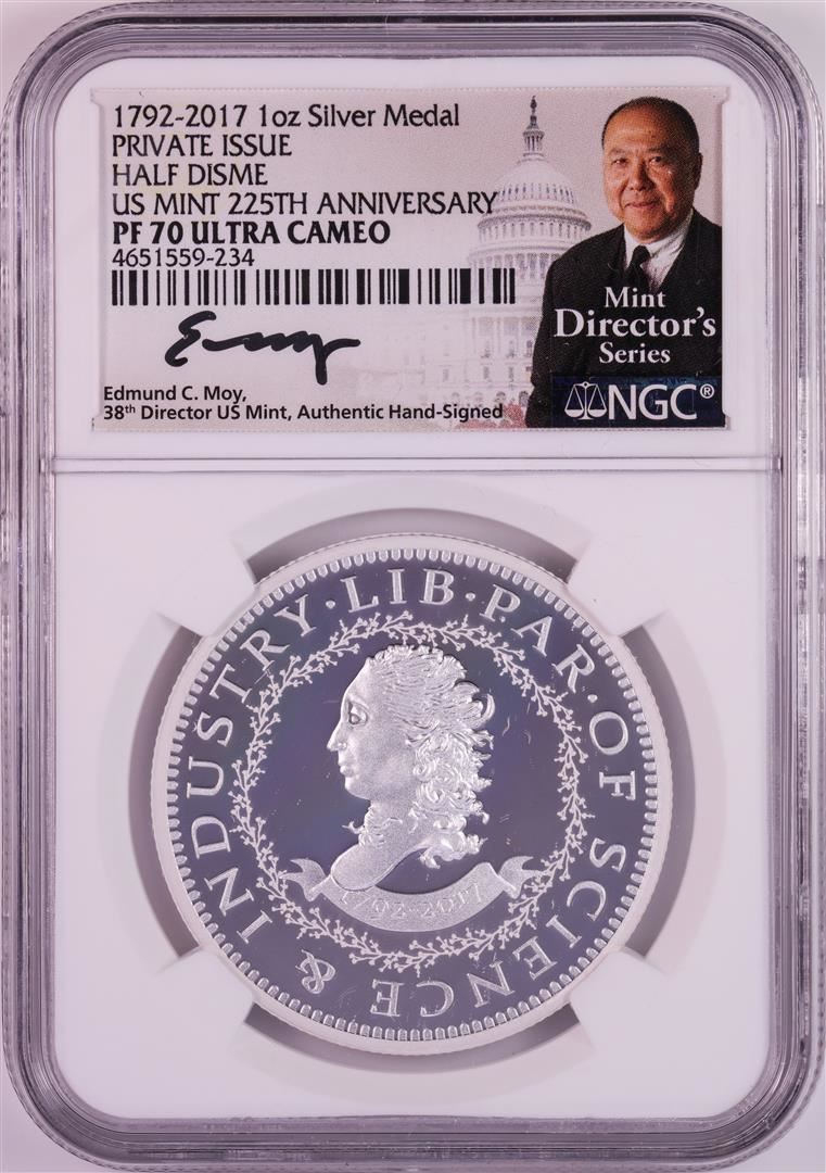 One 1792-2017 Half Disme 1 oz. Silver Medal NGC PF70 W/Edmund C. Moy Signature. NGC Certified.