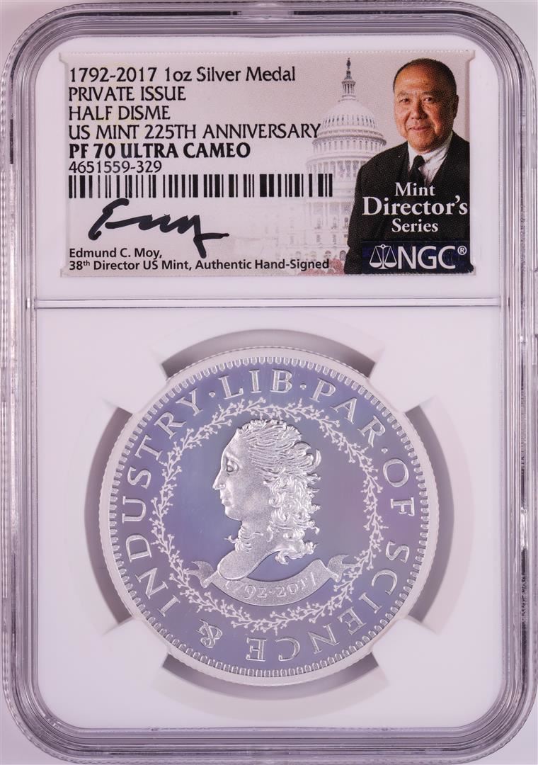 1792-2017 Half Disme 1 oz. Silver Medal NGC PF70 W/Edmund C. Moy Signature