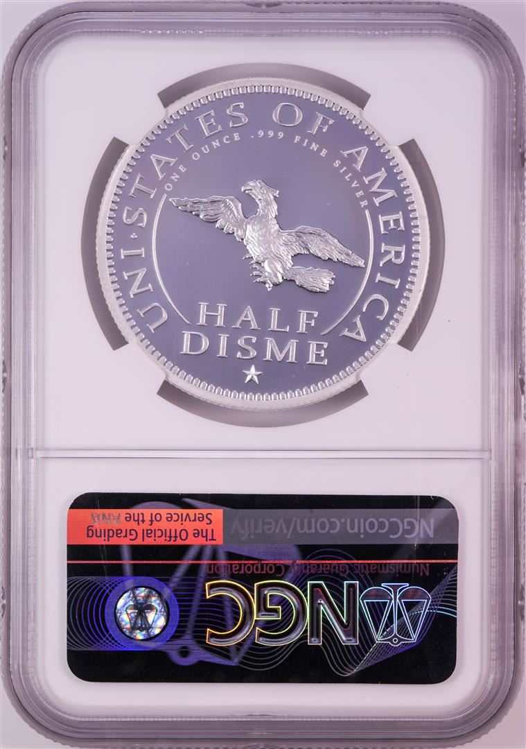 One 1792-2017 Half Disme 1 oz. Silver Medal NGC PF70 W/Edmund C. Moy Signature. NGC Certified.