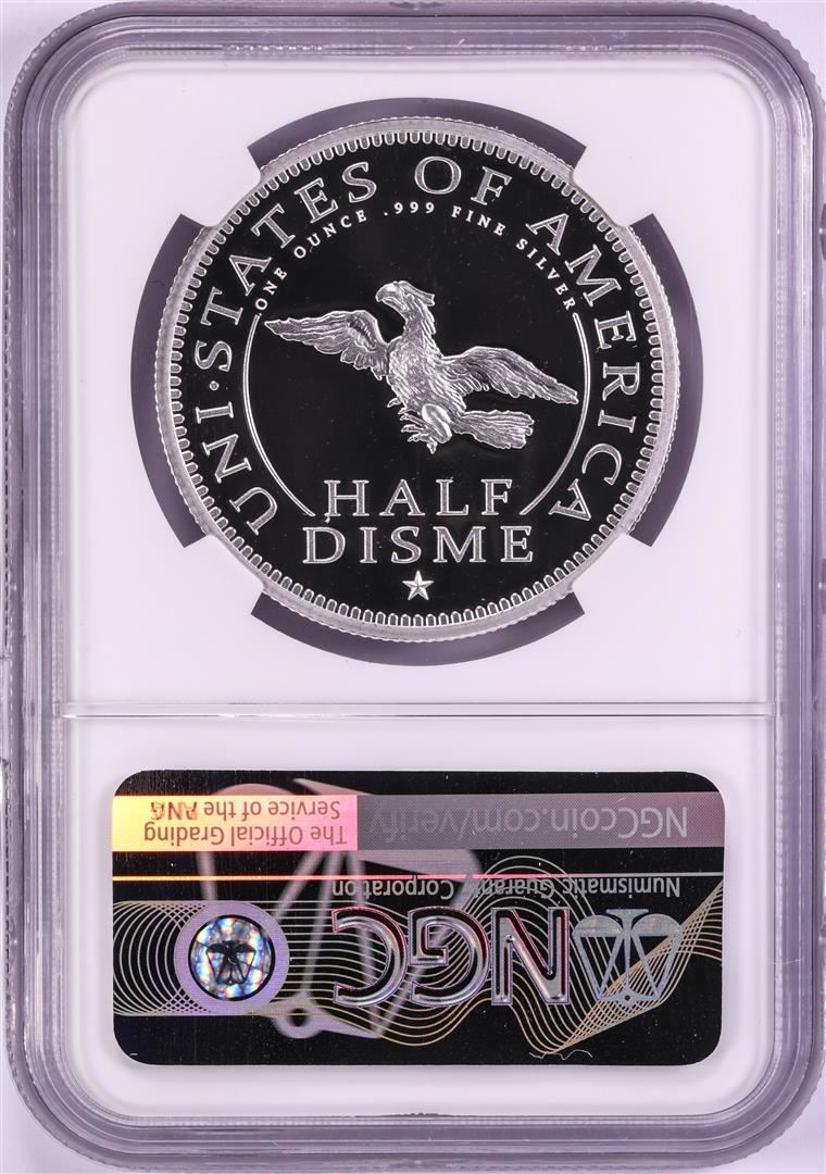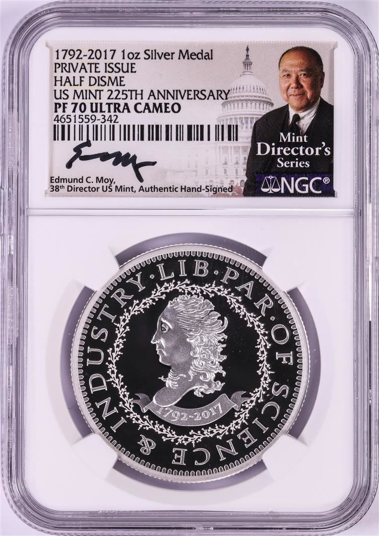 One 1792-2017 Half Disme 1 oz. Silver Medal NGC PF70 W/Edmund C. Moy Signature. NGC Certified.
