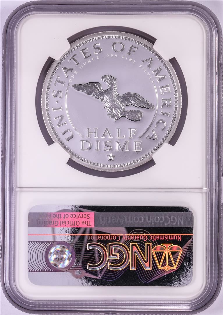 One 1792-2017 Half Disme 1 oz. Silver Medal NGC PF70 W/Edmund C. Moy Signature. NGC Certified.