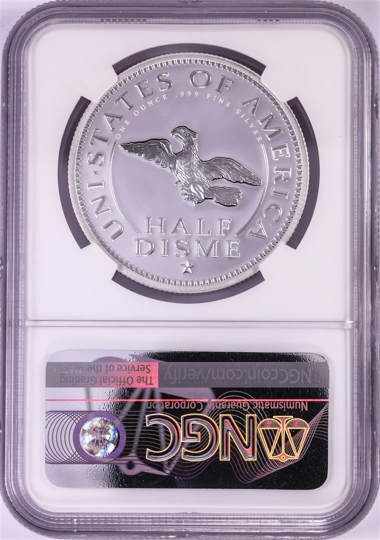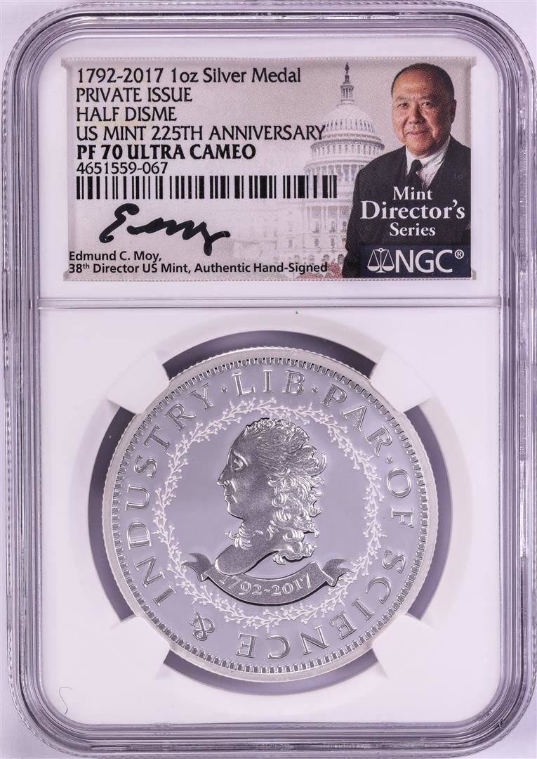 One 1792-2017 Half Disme 1 oz. Silver Medal NGC PF70 W/Edmund C. Moy Signature. NGC Certified.