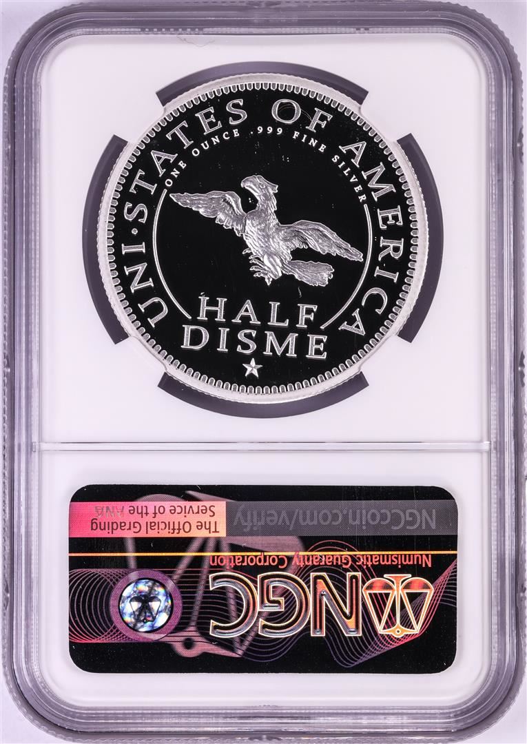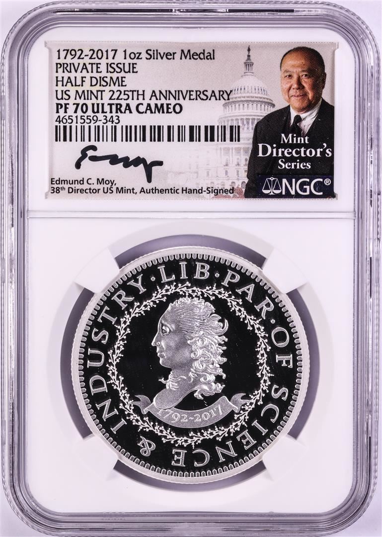 One 1792-2017 Half Disme 1 oz. Silver Medal NGC PF70 W/Edmund C. Moy Signature. NGC Certified.