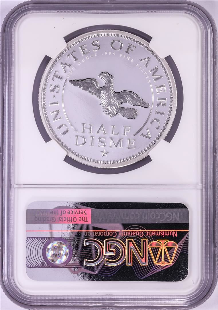 One 1792-2017 Half Disme 1 oz. Silver Medal NGC PF70 W/Edmund C. Moy Signature. NGC Certified.