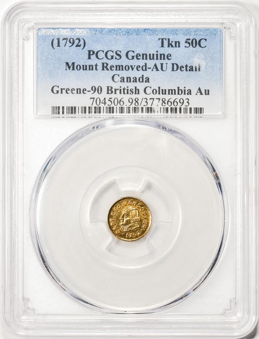 One 1792 British Columbia Half Dollar Gold Token Greene-90 PCGS Genuine AU Detail. PCGS Graded.