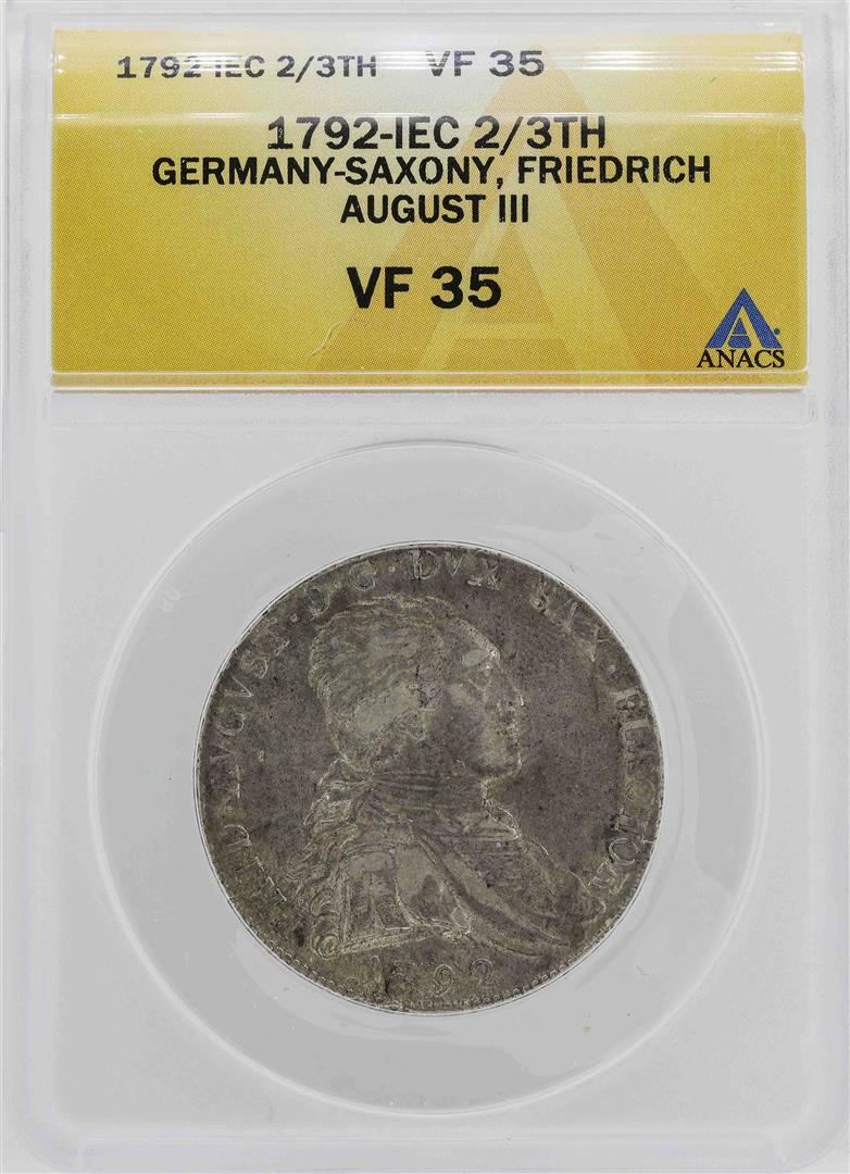 One 1792 IEC Germany-Saxony 2/3 Thaler Coin ANACS VF35. ANACS Certified.