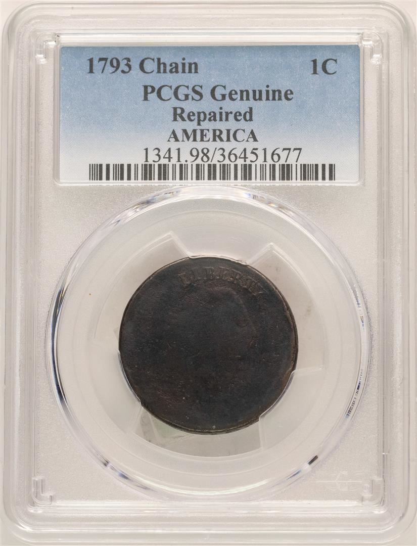 One 1793 Flowing Hair Large Chain Cent Coin PCGS Genuine. PCGS Graded.