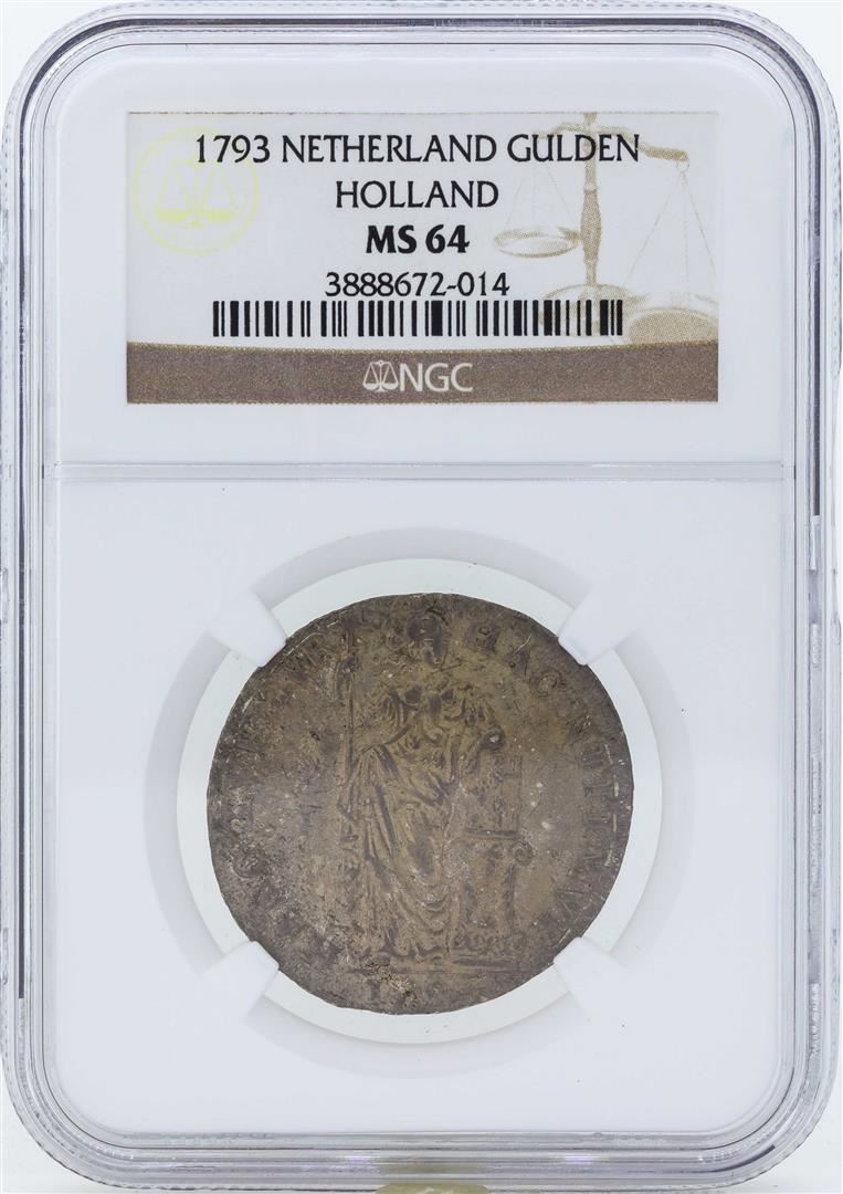 One 1793 Netherland Gulden Holland Coin NGC MS64. NGC Certified.