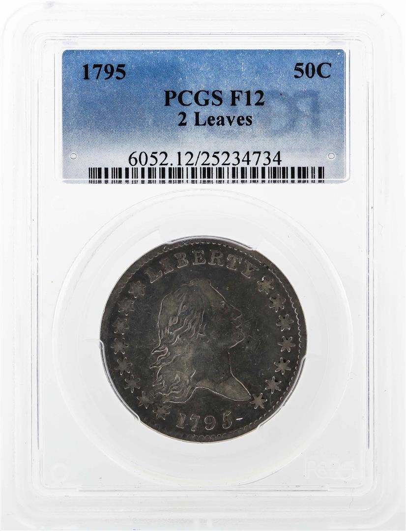One 1795 Half Dollar Silver Coin PCGS F12 2 Leaves. PCGS Graded.