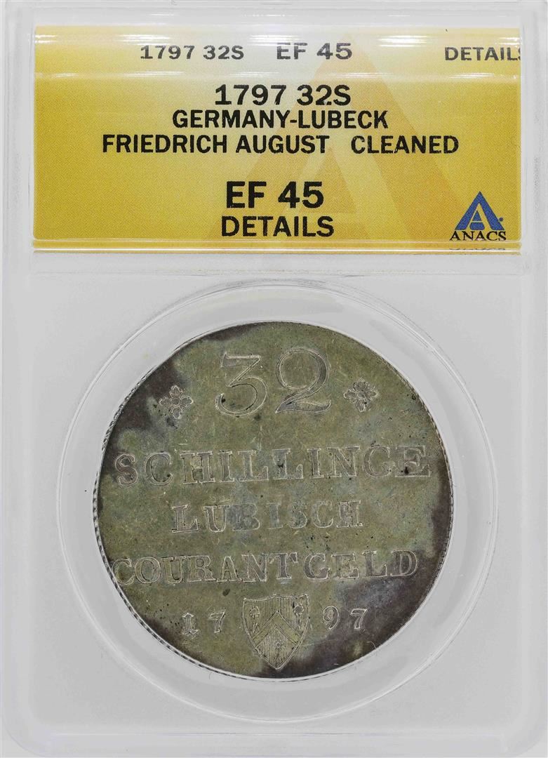 One 1797 Germany-Lubeck Friedrich 32 Shilling Coin ANACS XF45. ANACS Certified.