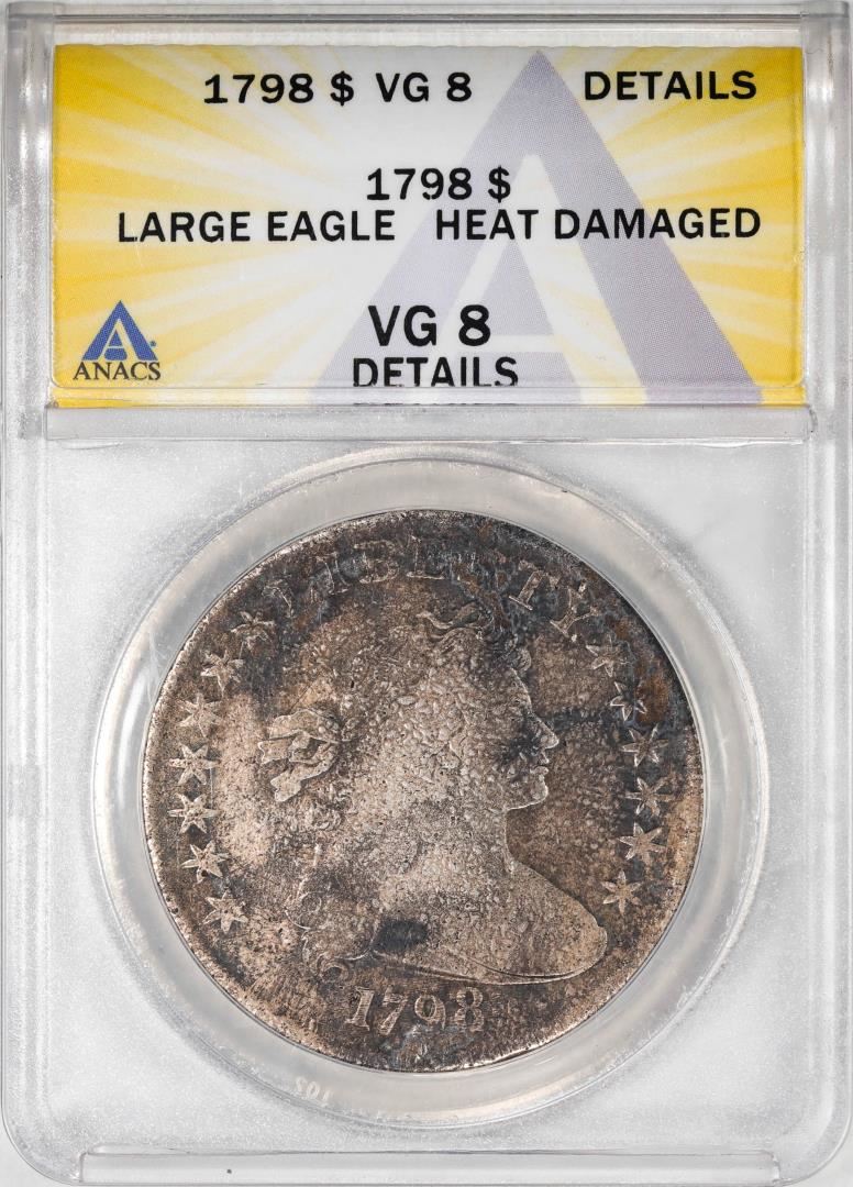 One 1798 $1 Draped Bust Silver Dollar ANACS VG8 Details. ANACS Certified.