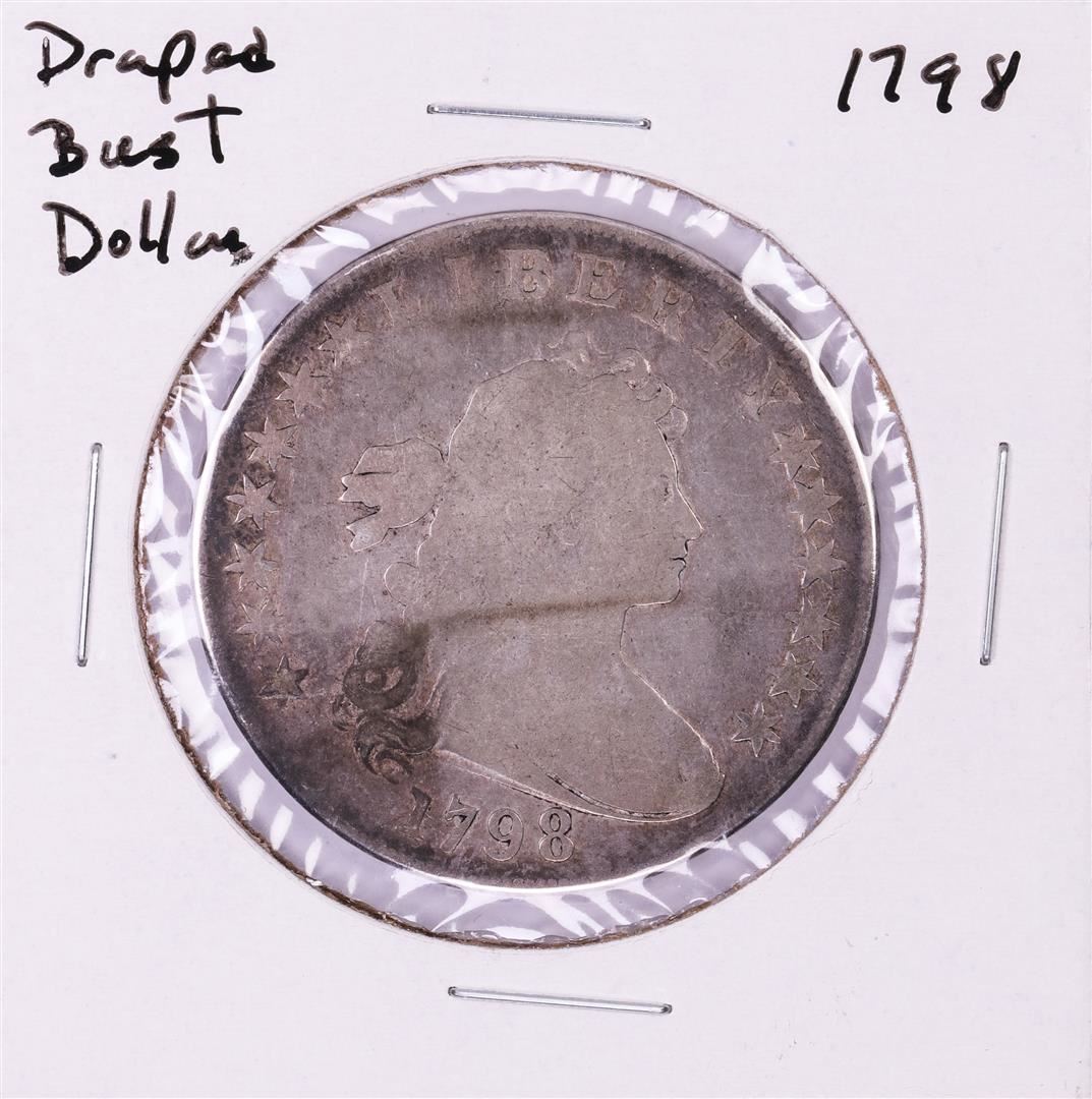 One 1798 $1 Draped Bust Silver Dollar Coin.