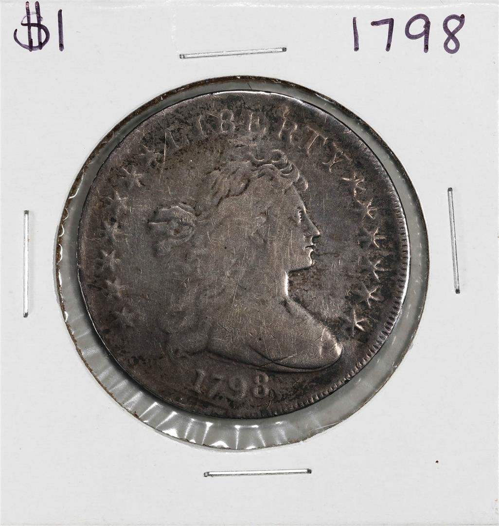 One 1798 $1 Draped Bust Silver Dollar Coin.