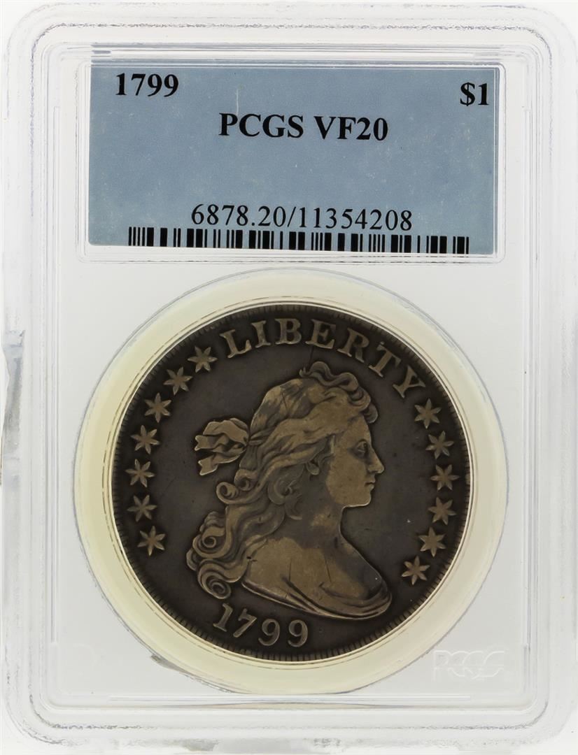 One 1799 $1 Draped Bust Silver Dollar PCGS Graded VF20. PCGS Graded.