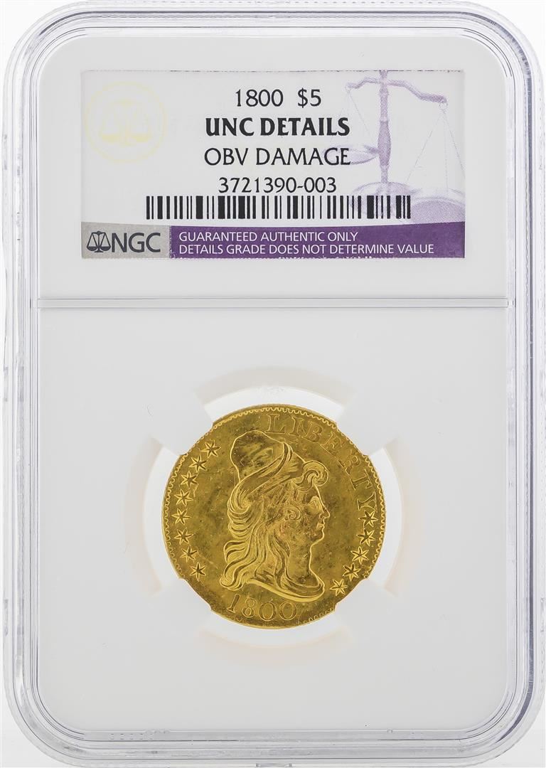 One 1800 $5 Heraldic Half Eagle Gold Coin NGC UNC Details. 1800 $5 A very popular type, the Heraldic Eagle $5 is always in demand. NGC Certified.