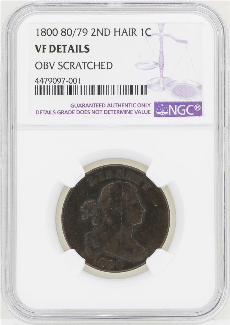 One 1800 80/79 2nd Hair Draped Bust Large Cent Coin NGC VF Details. NGC Certified.
