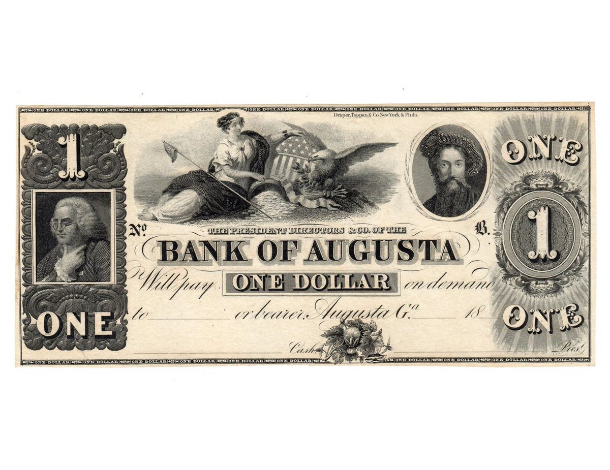 One 1800's $1 Bank of Augusta Obsolete Currency Note.