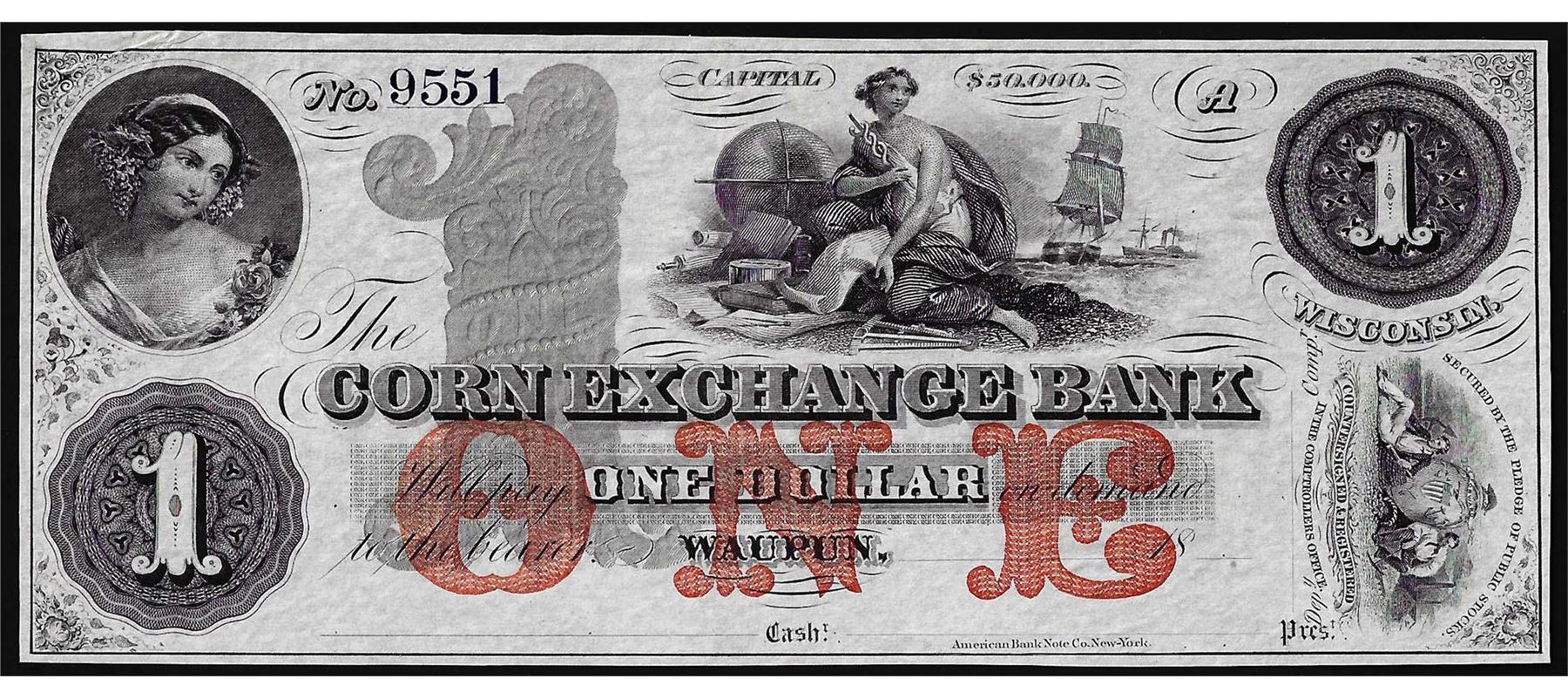 One 1800's $1 Corn Exchange Bank Obsolete Note.