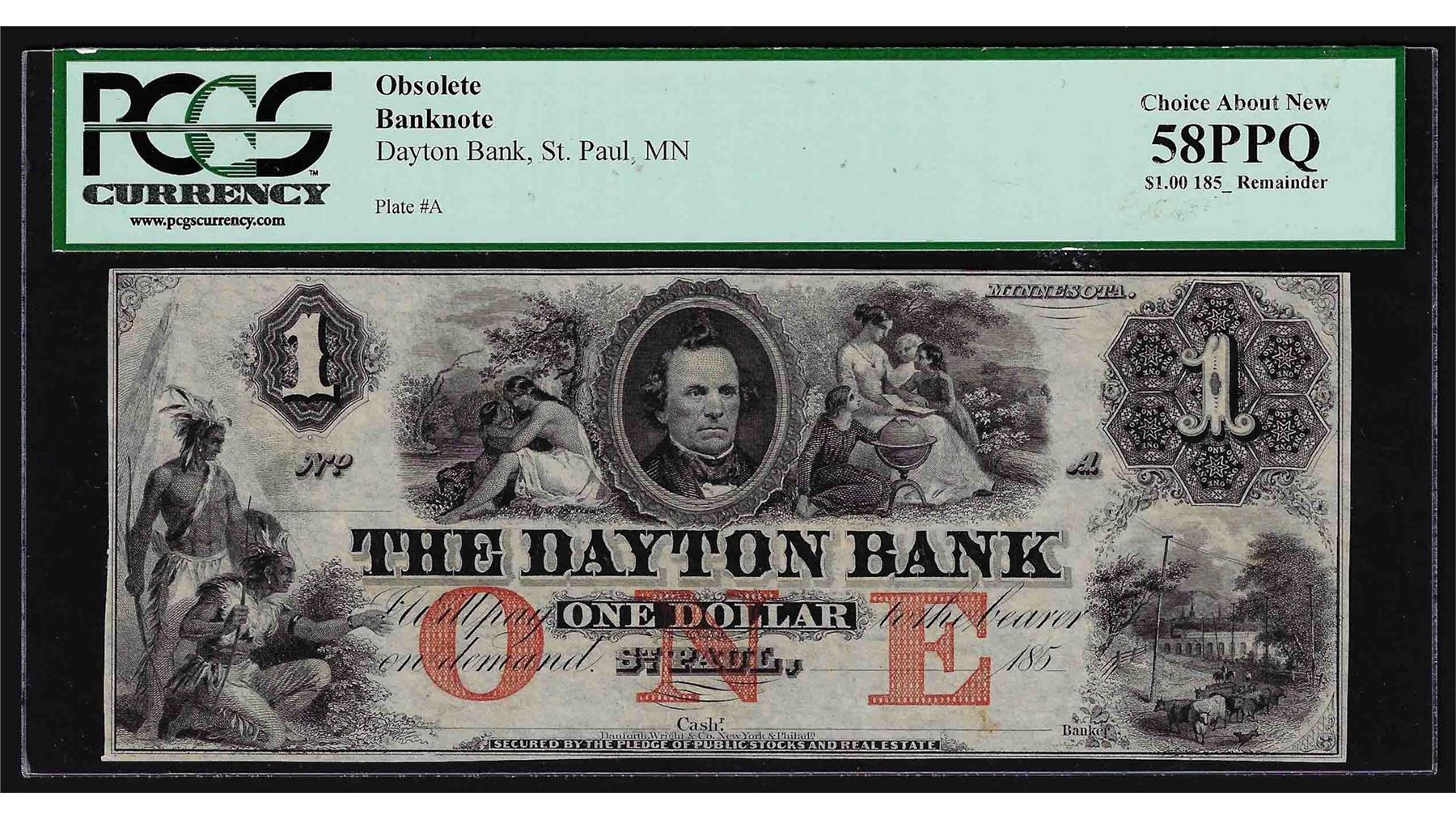 1800's $1 Daytona Bank St. Paul, MN Obsolete Note PCGS 58PPQ