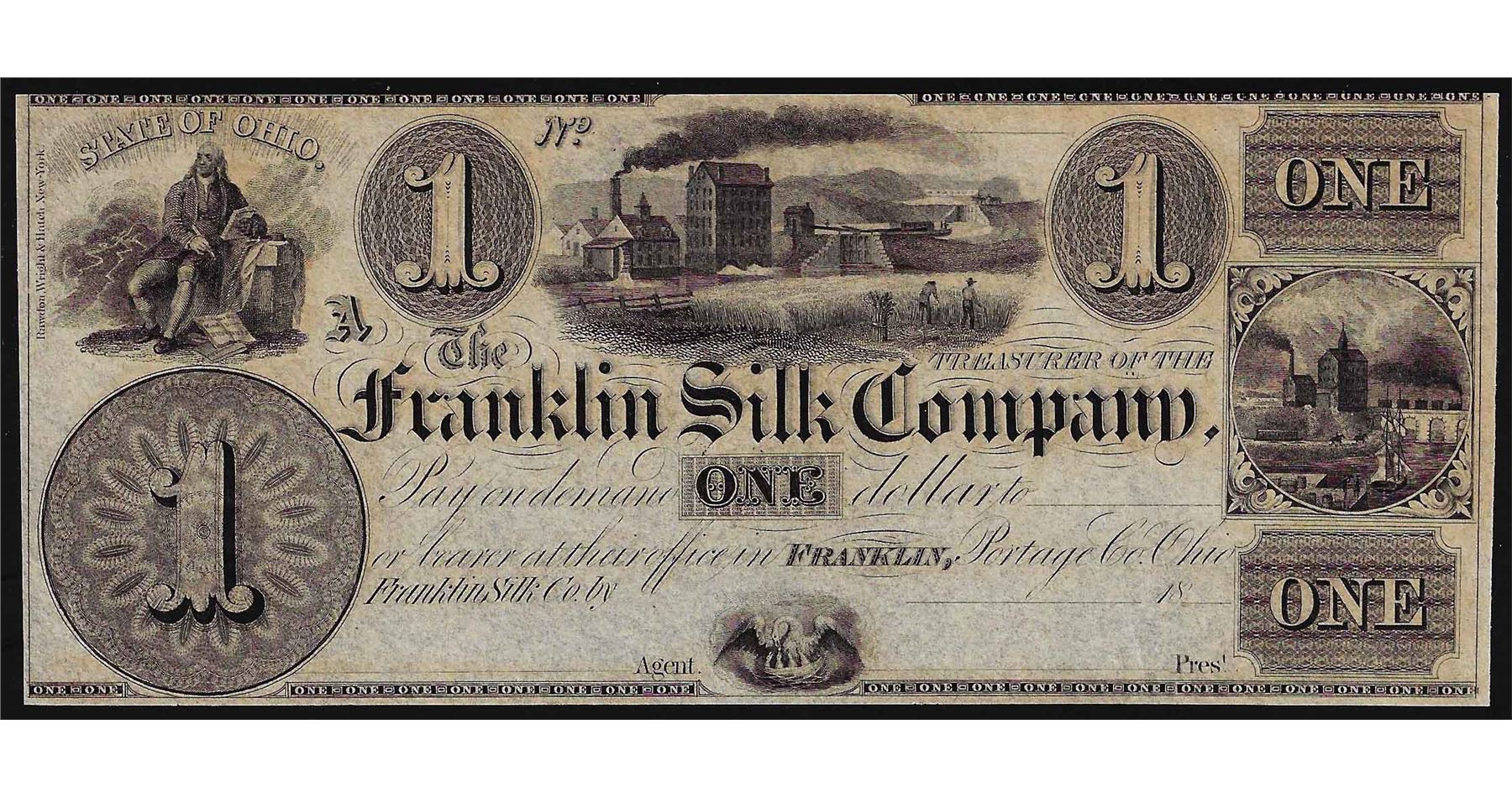 One 1800's $1 Franklin Silk Company Ohio Obsolete Bank Note.