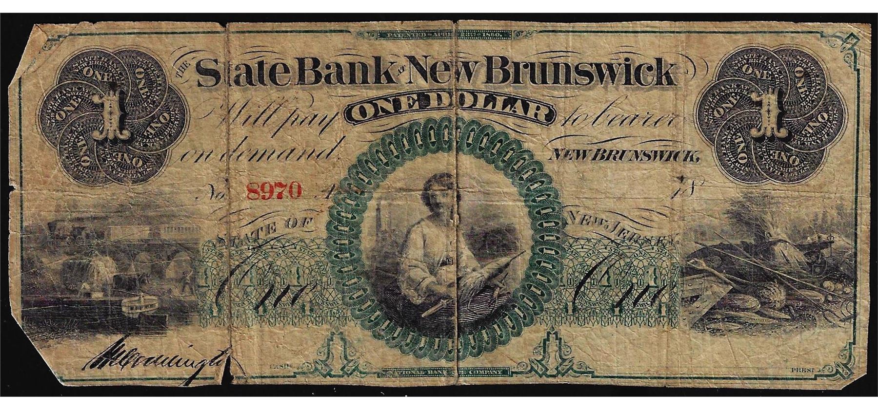1800's $1 State Bank New Brunswick New Jersey Obsolete Note
