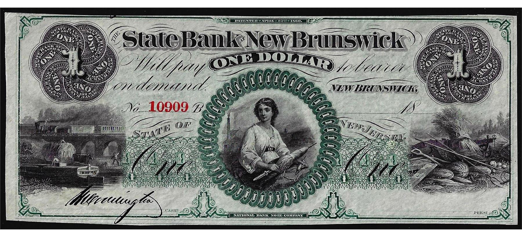 1800's $1 State Bank at New Brunswick, NJ Obsolete Banknote