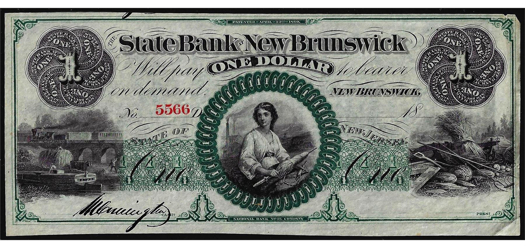 One 1800's $1 State at New Brunswick Obsolete Note.