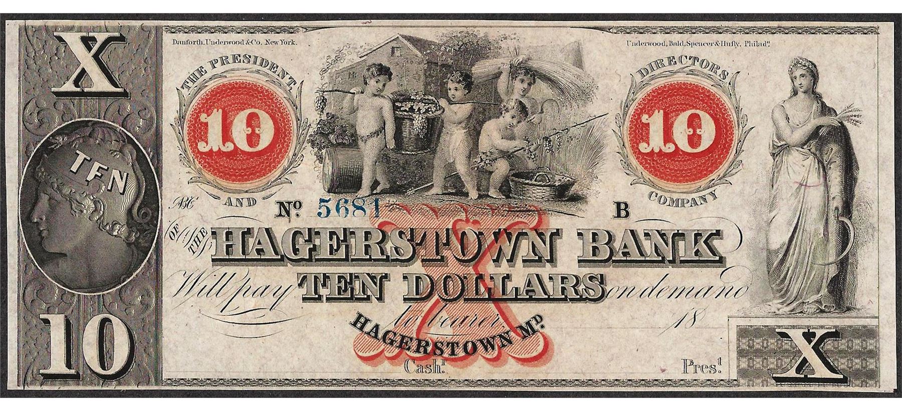 One 1800's $10 Bank of Hagerstown, MD Obsolete Note.